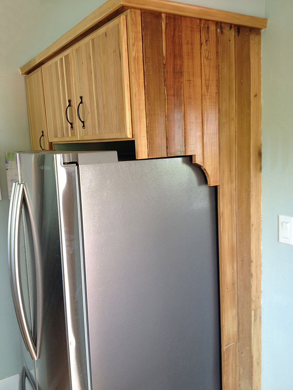 Beautiful fridge cabinet detail leaves the side for fun kids magnets and photos