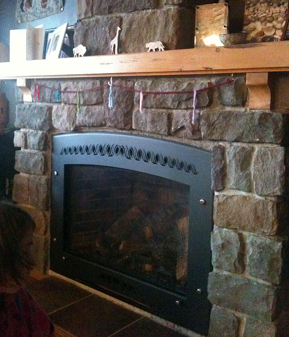 Matt Williamson Construction built this stone fireplace with reclaimed wood mantel