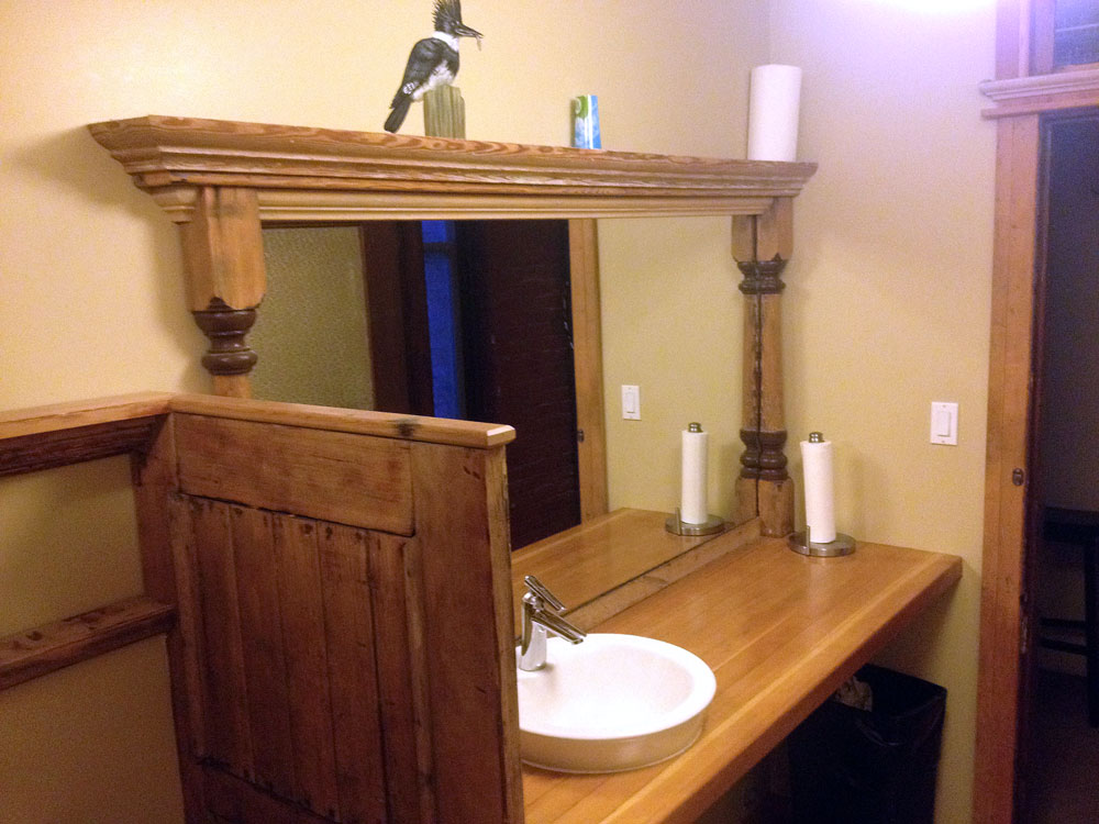Old Firehall heritage building reclaimed Kootenay Larch bathroom details