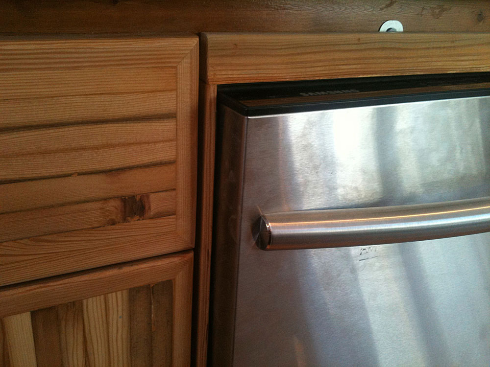 Lower liquor cabinet designed using Kootenay Larch reclaimed wood