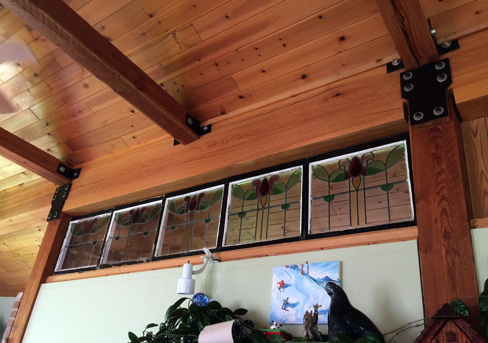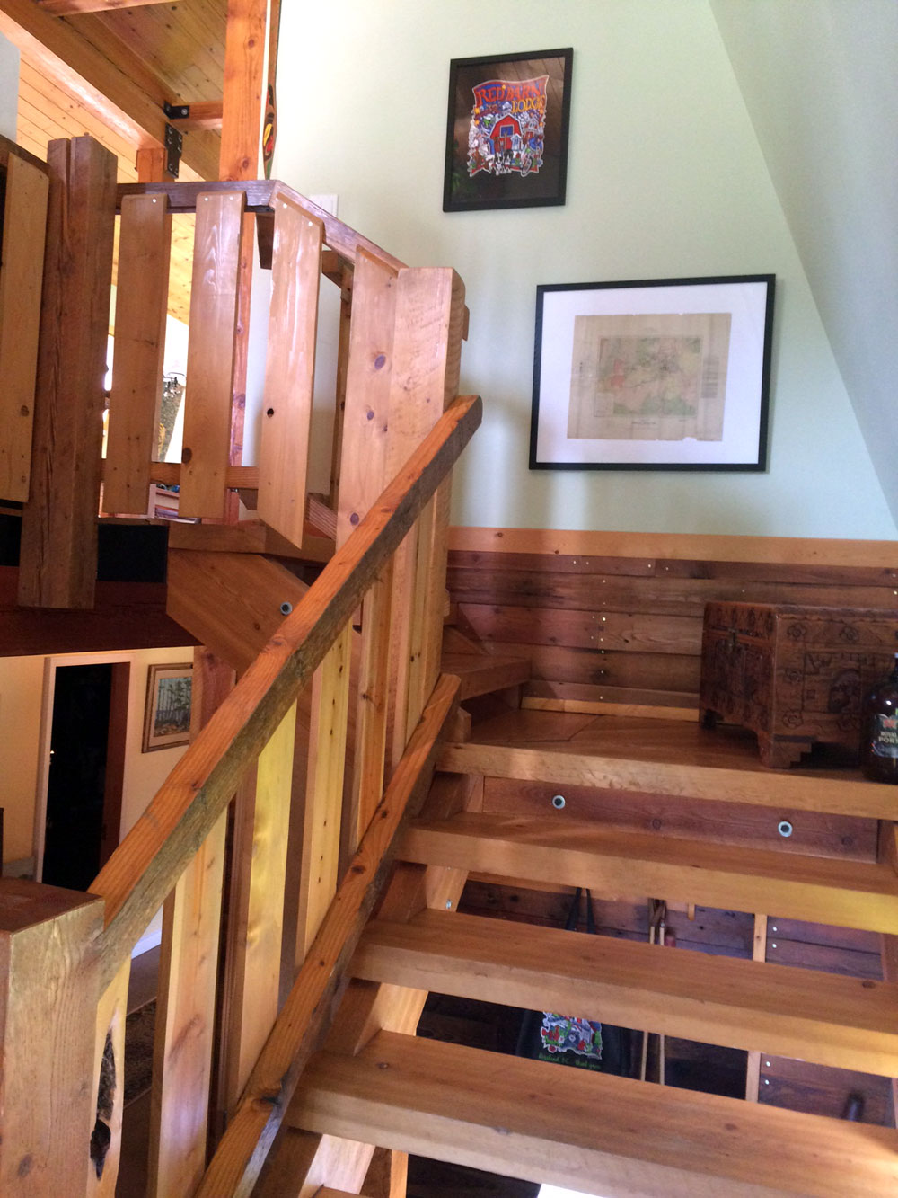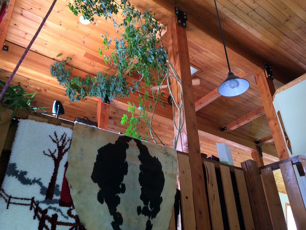 Upper level features large beams and wood ceiling built by Matt Williamson