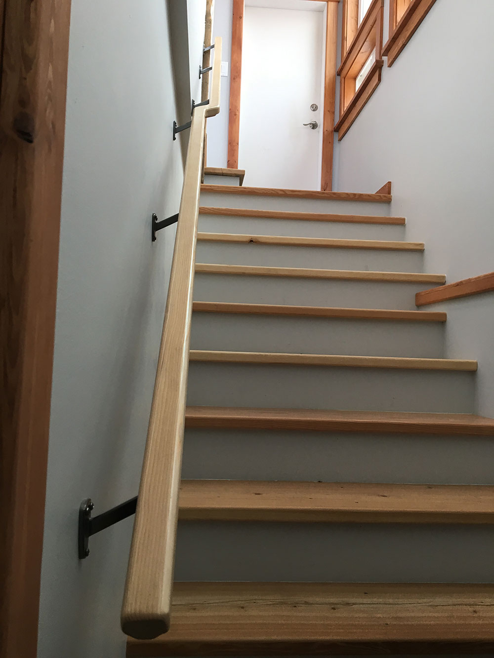 Staircase to upper level of this barn turned into a house