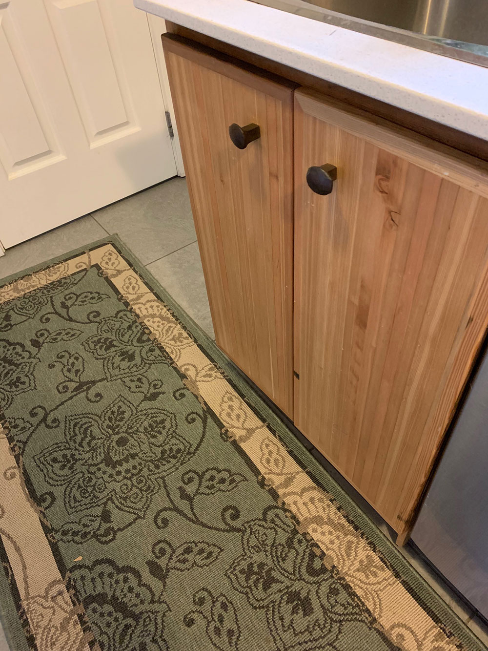 Railway spikes used as hardware for cupboard handles