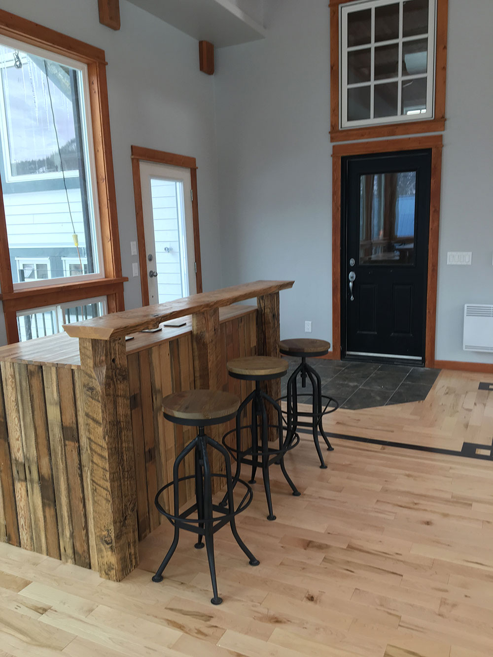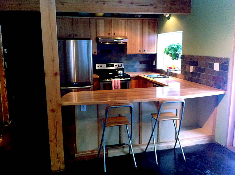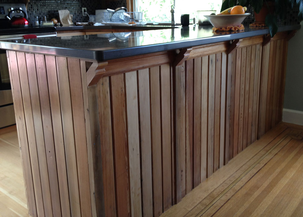 Reclaimed Kootenay Larch bar counter at 2365 First Avenue home