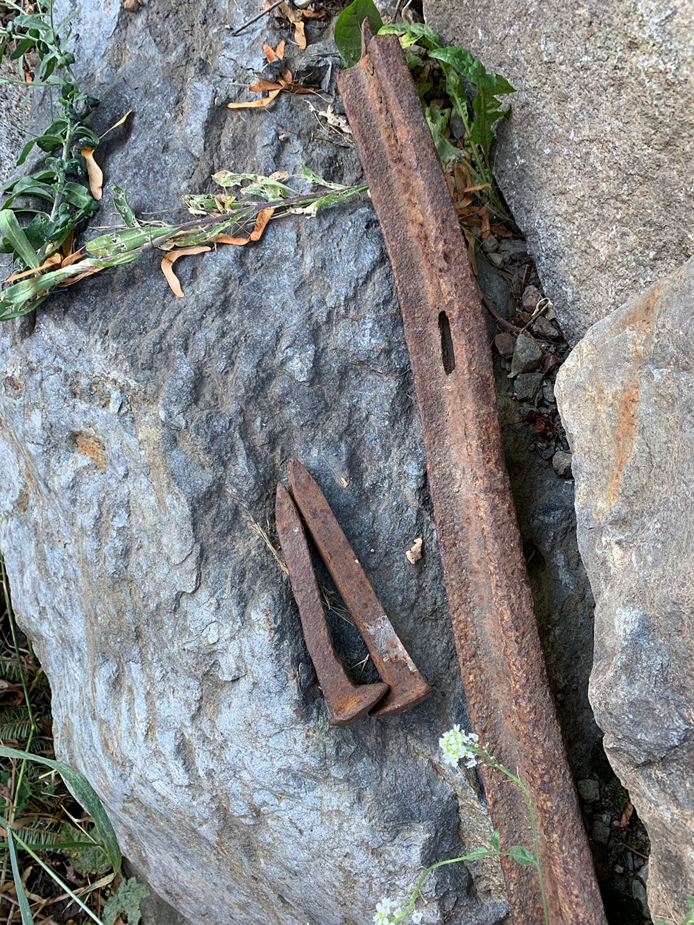 Railway spikes used as hardware for drawer handles